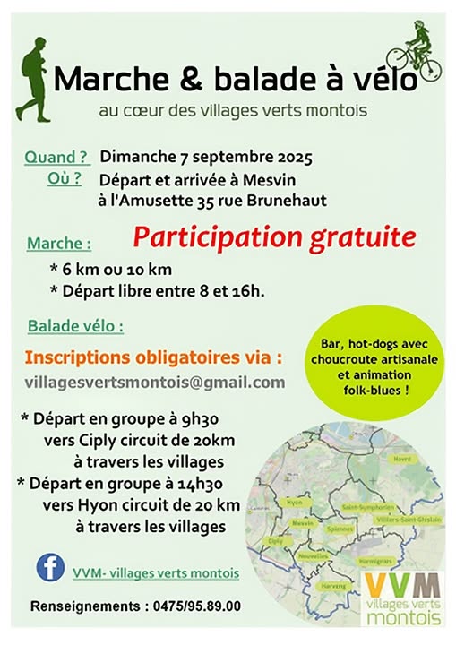 07/09/2025 – Mesvin 7 septembre 2025 | Pas de commentaire Date/Heure: 07/09/2025 9 h 30 - 12 h 00 Lieu: Place 7022 - Mesvin (Belgique) Parcours: Rendez-vous de notre groupe sur la place de Mesvin. PAF gratuite. Départ de notre groupe à 9h30 en direction d’Hyon. Retour 12h00 via l’amusette, rue Brunehaut. Marche guidée